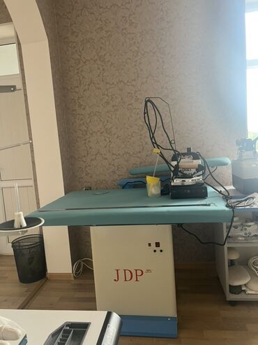 - JDP sənaye ütü masasI: geniş iş səthi, stabil korpus, ayaq pedallı vakuum/sorma sistemi üçün hazır baza (hava axınına uyğun yan ventilyasiya və çıxışlar). Geyim hissələrinin rahat işlənməsi üçün yardımçı qol masa əlavəsi.