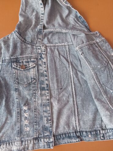 Qısa denim gödəkçə - Rəng: açıq mavi (yüngül yuma effekti) - Model: cropped/qısa kəsim, klassik yaka - Bağlanma: ön hissədə metal düymələr (snap) - Ciblər: ön tərəfdə iki böyük yamaq cib - Qollar:...