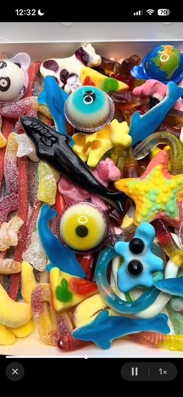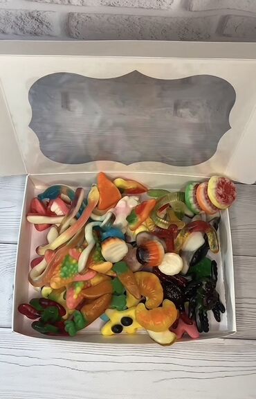 - Rəngarəng assortiment: meyvəli, şirin, turş və qatı teksturalar qarışığı.