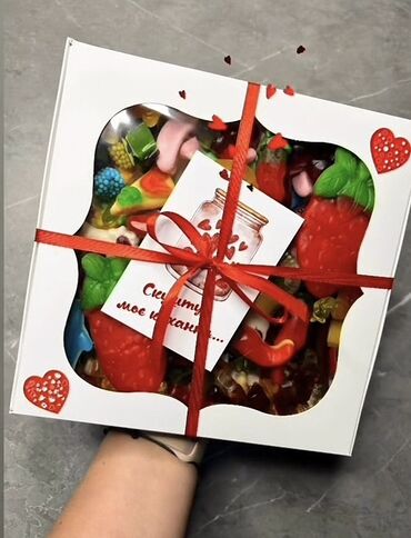 - Şəffaf pəncərə sayəsində məzmun görünür; bayram temalı (Sevgililər Günü, Yeni il və s.) müxtəlif qutu dizaynları.