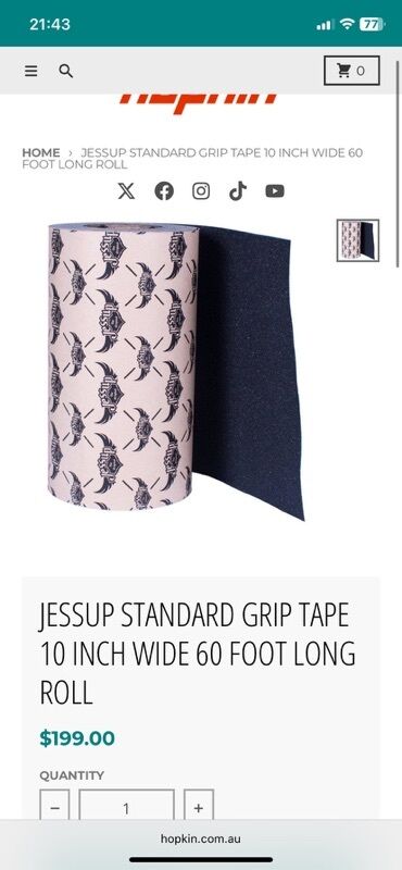 Şəkildə göstərilən məlumat: “Jessup Standard Grip Tape 10 inch wide 60 foot long roll – $199.00”.