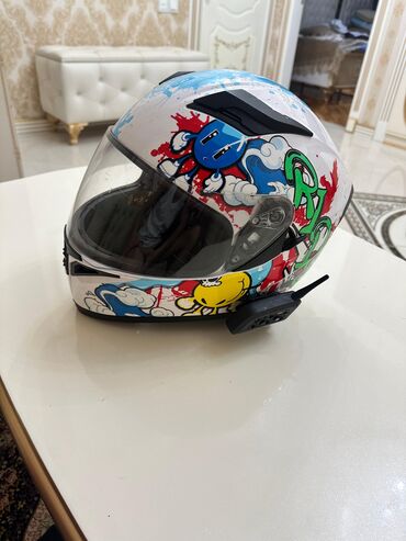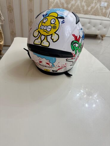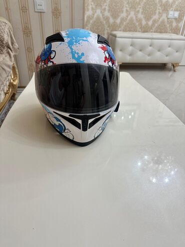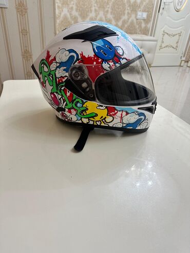 - Vizor: şəffaf ön vizor, geniş baxış bucağı; ön hissədə hava girişi olan çənə ventləri