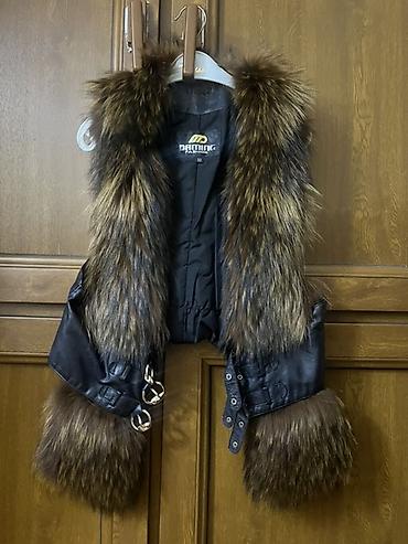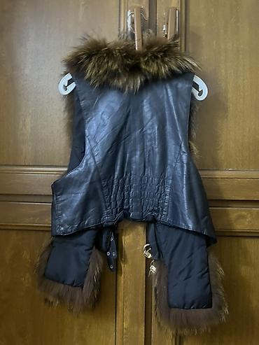 Qadın üçün dəri və süni kürk detallı jilet