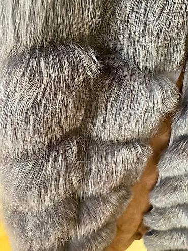 Qadınlar üçün təbii xəz jilet - Brend: Femina (etiket üzərində) - Model: qalın bloklu, qolsuz tüklü jilet - Rəng: pastel tonlarda qarışıq – toz-çəhrayı və açıq boz zolaqlar - Material: yumşaq, sıx...