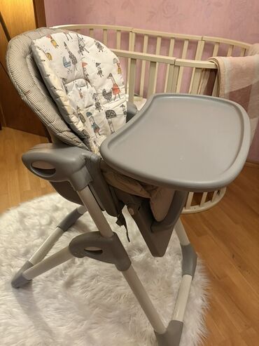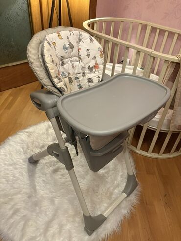 Uşaq yemək kreslosu - Rəng: ağ‑boz, qızılı detallarla - Geniş, çıxarılan ikiqat yemək masası (stəkan yuvası var) - Yumşaq, rahat oturacaq və bel üçün 5 nöqtəli təhlükəsizlik kəməri - Arxalıq tənzi...