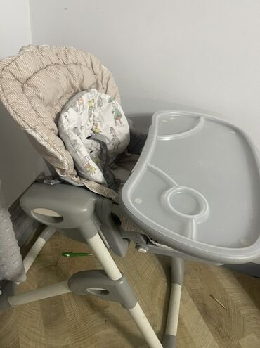 Uşaq yemək oturacağı – çoxfunksiyalı, tənzimlənən model - Rəng: açıq boz/ağ, qrafit detallarla - Yumşaq, yuyula bilən eko-dəri oturacaq və bel dəstəyi - Çıxarılan və yuyulan ikili yemək masası: üs...