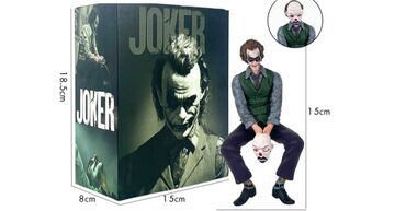 - Dizayn: “The Joker” personajının detallı modeli, oturaq formada. Realistik üz ifadəsi, yaşıl jilet, naxışlı köynək, tünd şalvar və rəngli corab detalları ilə.