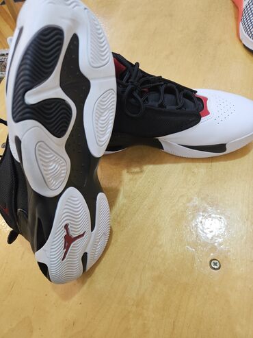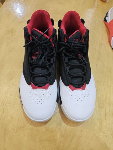 –NİKE JORDAN MAX AURA 4 qara/ağ/qırmızı rəng kombinasiyası.