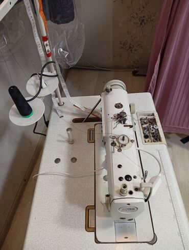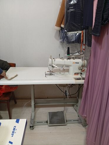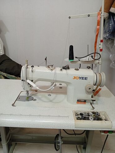 Sənaye tikiş maşını – JOYEE markası - Tip: Düz tikiş (single needle, lockstitch) sənaye maşını - Komplekt: İnteqrə edilmiş geniş iş masası, iplik stendi (iki çıxışlı), pedal və motor bazası, bobin...