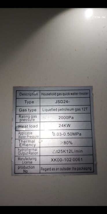 - Təyinat: Household gas quick water-heater (axın tipli qaz su qızdırıcısı)