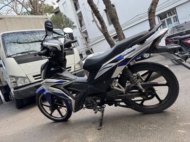 Moped/motosiklet – Tufan Cub/Sport üslubu - Marka/model: Tufan (Cub/Sport tipli underbone) - Rəng: mavi-ağ-qarışıq qrafikalar - Mühərrik: tək silindr, hava ilə soyudulan, karbüratorlu (sürət qutus...