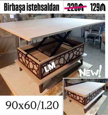 Transformer jurnal masalar. Ölçü: 90*60 bağlı vəziyyətdə H38 90*120 açıq vəziyyətdə H70. Qiymət :129AZN ‼️ Sifarişlə hazırlanır Çatdırılma xidməti bolt qiymətinə mümkündür. Rəng seçimləri mövcuddur