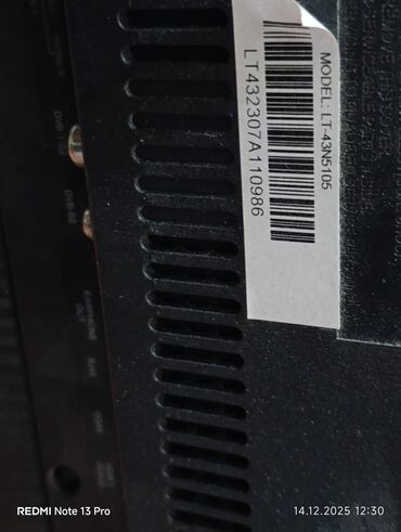 43 düymlük LED panel, çoxsaylı qoşulma portları və rəqəmsal tuner dəstəyi ilə film, oyun və televiziya izləmək üçün uyğun modeldir. Model kodu və texniki göstəricilər korpus üzərində etiketlərdə göstərilib.