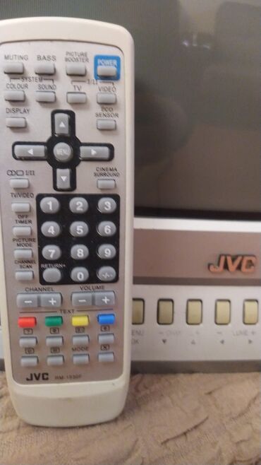- Pult: JVC RM-1530F tam funksional düymələrlə (Power, TV/Video, Səs/Kanal idarəsi və s.)