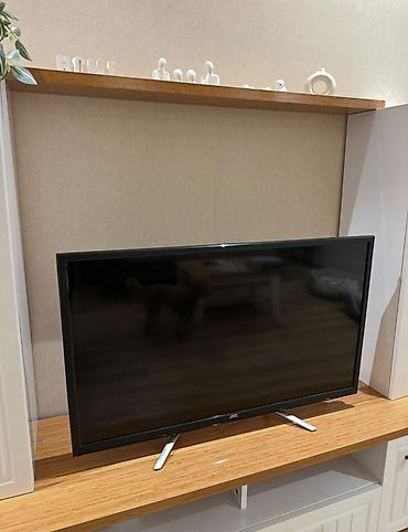 LED televizor - Ekran: təxminən 40–43 düym diaqonallı, nazik çərçivəli LED panel - Rəng: qara korpus - Qoşulma: arxa/yan hissədə naqil girişləri mövcuddur (şəkildə görünür). Tipik olaraq HDMI, USB...