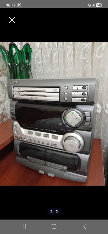 Ev üçün güclü stereo səs, CD, kaset və radio ilə çoxşaxəli istifadəyə uyğun klassik JVC dəst. Kolonlar və əsas blok birlikdə.