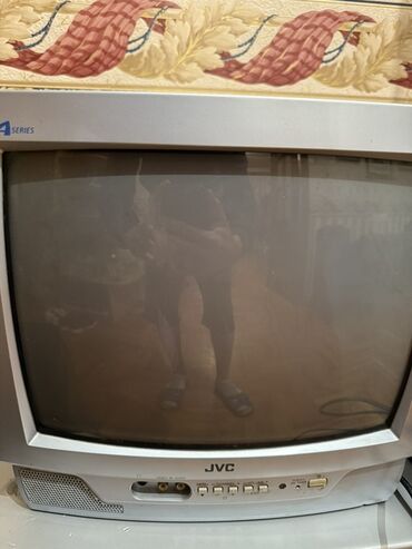 JVC kineskop televizoru - Marka: JVC - Ekran: kineskop (CRT), təxminən 21–25 düym diaqonal - Korpus rəngi: gümüşü-boz - Ön paneldə fiziki düymələr: açma/söndürmə, səs və kanal idarəsi - Giriş/çıxı...