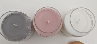 Məhsul: Dekorativ əl işi şamlar kolleksiyası - Material: parafin/şam mumu, pambıq fitil - Rənglər: açıq çəhrayı və mavi tonlar, ürək formalı modeldə daxili qırmızı seçim də var - Qoxu: neytral (şə...