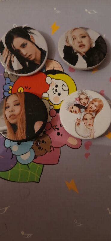 - 4 ədəd BLACKPINK nişanlı rozet: dairəvi metal arxa hissəli iynə bağlayıcılı. Üz hissəsində yüksək keyfiyyətli çap – 3 fərdi üz fotoşəkli və 1 ədəd qrup kompozisiyası. Çantaya, köynəyə, cins gödəkçəyə və ya penal/çantaya bərkitmək üçün uyğundur.