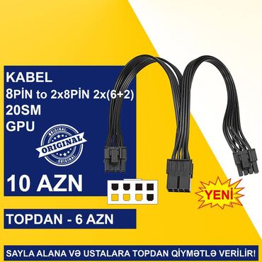 ⭐8pin Female to 2x8pin (2x6+2) Male GPU 20sm – 8 AZN (Topdan 5 AZN)