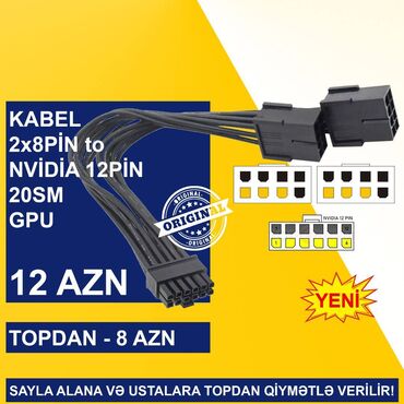 ⭐2x8pin Female to Nvidia 12pin Male GPU 20sm – 12 AZN (Topdan 8 AZN)