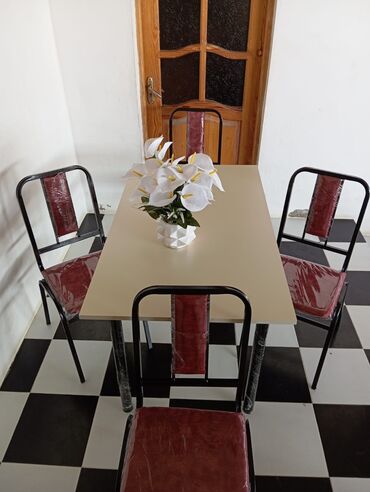 Metal karkaslı mətbəx/stul - Rəng: ağ metal çərçivə - Arxa dayağı: “X” formalı dekorativ və möhkəm konstruksiya - Oturacaq: yumşaq süngərli, çiçək naxışlı parça/derman örtük; qoruyucu plyonka üzər...