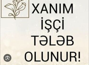 Xanım işci teleb olnur. İş saatı 10:00 dan 19:00 Bazar isdrahet.Xaiş olnur işden anlayşı olan elaqe saxlasın.Razılaşma yolu ilə