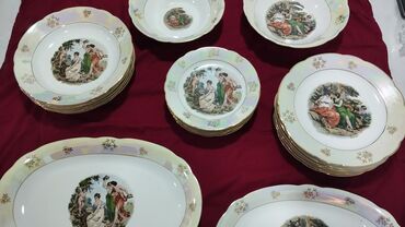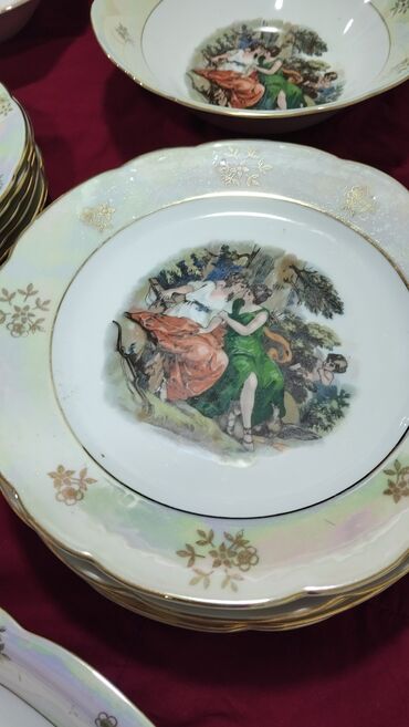 - Xüsusiyyətlər: dekorlar şir altında, kənarlar qızıl haşiyəlidir; köhnə Almaniya (GDR) istehsalı kolleksiya dəyərinə malikdir