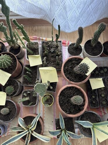 - Mini kaktuslar: dairəvi və sütunvari formalar, ayrı plastik qab və kasalarda.