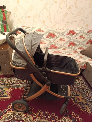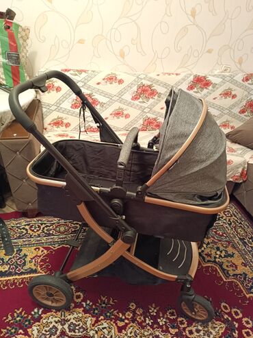 Uşaq arabası – beşik tipli, mavi-boz rəng real aliciya endirim olacag