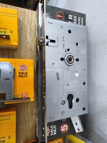 Qapı tutacağı və kilid dəsti - Daxili qapılar üçün universal tutacaq mexanizmi - İki tərəfli (sol/sağ) qol tutacaqlar - Silindrli kilid nüvəsi və açar dəsti (şəkildə 2 açar görünür) - Gövdə: qara ...