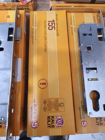 Qeyd: Qutuların üzərində “Mortise Lock with Cylinder”, model kodları (155, 153P) və standart nişanları verilmişdir.