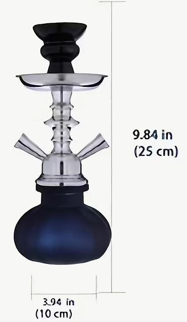Qelyan - Metal gövdə: Mat qara və mavi rəngli, yivli dizayn, stabillik üçün geniş altlıq. - Şlanq: Uzun elastik silikon şlanq, anodlaşdırılmış mavi ağızlıqla. - Tütün kasası: Gil (keramika) kasa, ...