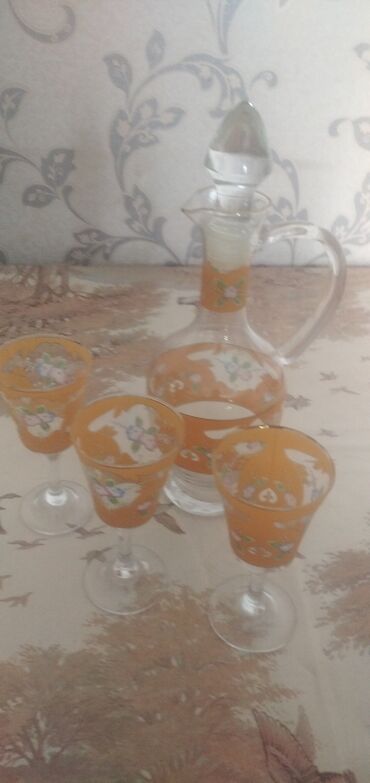 Zərif qrafin və qədəhləri. Yalnız dörd qədəh qalır. Yalnız dekor kimi işlədilib. bəzi metro stansiyasılarina çatdırılma var
