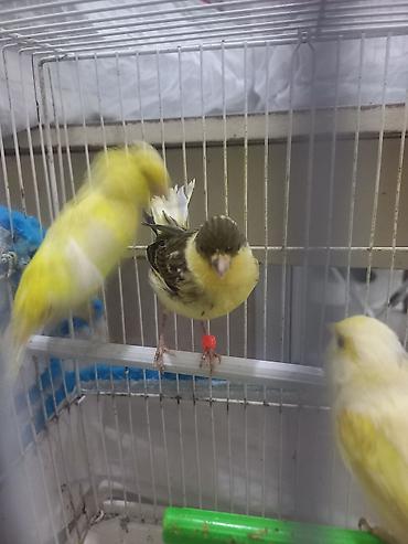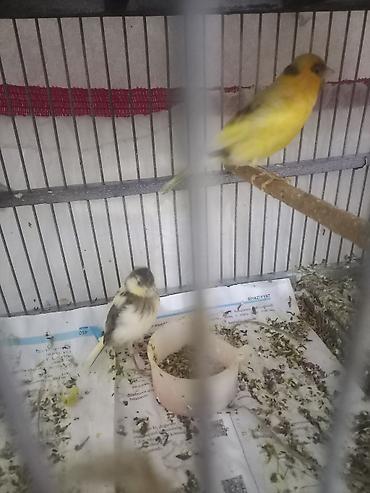 Kanareyka quşları – cüt-cüt - Növlər: Kanareyka - Rənglər: sarı (iki fərqli ton), ağ və boz-ağ qarışıq - Say: bir neçə cüt - Qəfəsdədir, plastik yemlik və bidonlu su qabı, perch/oturacaq çubuqları...