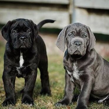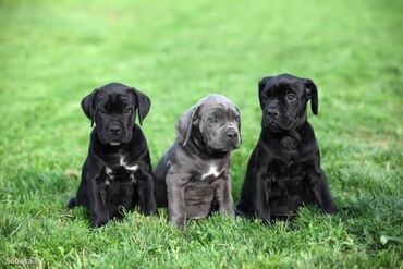 Boz və qara rəngli Cane Corso balaları. Bu it cinsi öz sədaqəti və güclü xarakteri ilə tanınır. Evinizi və ailənizi qorumaq üçün əla seçim ola bilər. 45 günlükdürlər hal hazırda. Safqan, sağlam, ir...