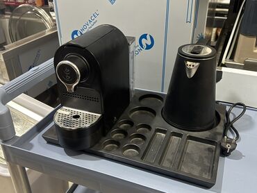 Nağd ödənişHotel üçünQara rəngdə, kapsul tipli qəhvə hazırlamaq üçün nəzərdə tutulmuş qəhvə maşını və elektrik çaydanı dəsti. Dəstə qəhvə kapsulları və çaydan üçün xüsusi yerləri olan altlıq daxildir. Kompakt dizaynı sayəsində mətbəx və ya ofis üçün əlverişlidir.