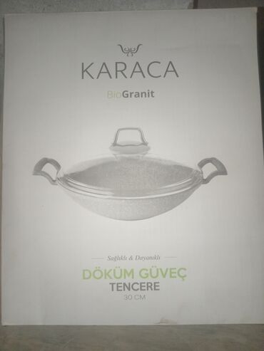 Qutusu üzərində “Sağlamlı & Dayanıklı, Döküm Güvəç Tencere 30 CM, Karaca BioGranit” qeyd olunub. Mətbəxdə həm bişirmə, həm də servis üçün estetik və praktik seçimdir.