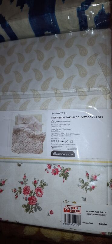 Məhsul Türkiyə istehsalıdır. Materialı atlazdır. Yenidir. 6 predmetdən ibarətdir. 1 ədəd 200x220 yorğan üzü 1 ədəd 220x250 çarşaf 2 ədəd 70x70 yastıq üzü 2 ədəd 50x70 yastıq üzü 235 manata alınıb.