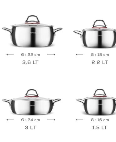 Şorba, plov, qızartma və buğda yeməklər üçün fərqli həcmlər praktik kombinasiyada təqdim olunur. Marka: Karaca.