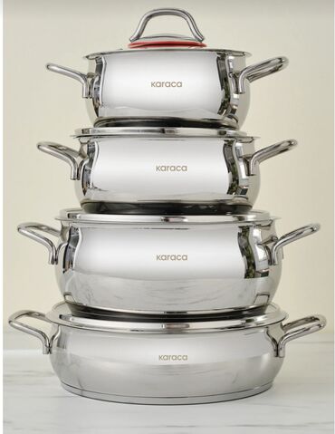Karaca paslanmayan poladdan qazan və tavalar dəsti