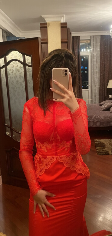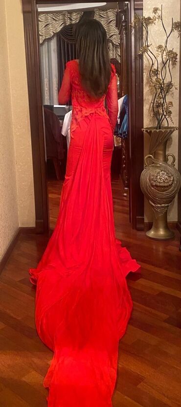 Ünvandan götürməKaralevski paltar,şleyfli alınıb 500 m, bir defe cemi nişanda geyinilib razmer S, şok endirim olundu, 100 m satılır, qırmızı ,qolları güpur