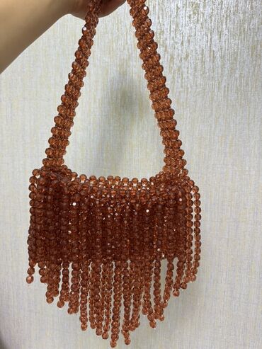 EndirimsizKaramel rəngli muncuqdan əl çantası