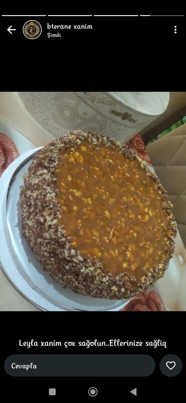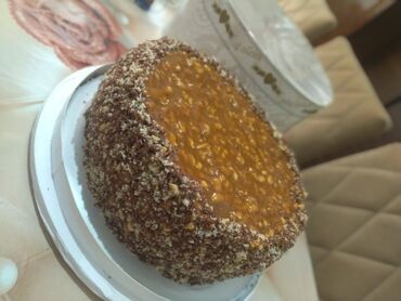 Karamelli-fısdıqlı tort - Yuxarı qat: qatı karamel sousu və