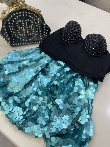 Şık mini gecə paltarı - Rəng: qara və açıq yaşıl kombinasiyası - Material: atlas effekti verən parça - Dizayn: bədənə oturan qara mini ətək və korsetvari bel hissə, ön hissədə asimmetrik qatlanma ...