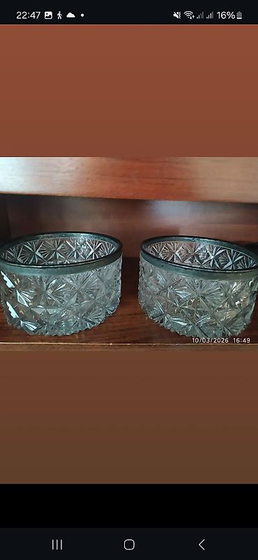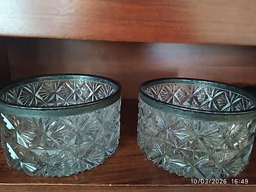 Qənd, konfet qabları. 2 ədəd. Cütü 8 azn Çox qalın, naxışlı şüşə. İstifadə olunmayıb. Ölçü 25 / 13 sm Real alıcılar narahat etsin,wp aktivdir.
