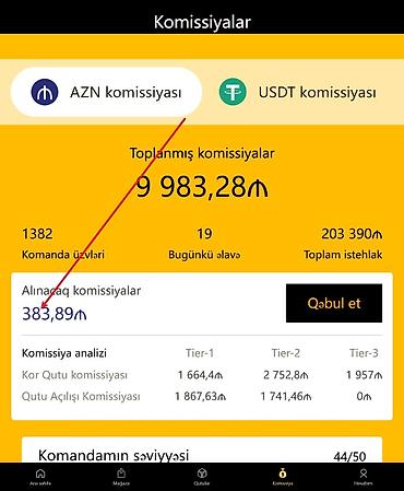 - Gəlir və komissiyalar “Mənim Gəlirim” və “Komissiyalar” bölmələrində dərhal əks olunur