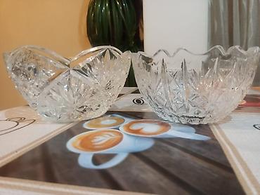 Şəffaf kristaldan hazırlanmış iki bəzəkli kasa. Hər bir kasanın kənarları qıvrım formadadır və səthində mürəkkəb kəsmə naxışları var. Bu kasalar mətbəxdə qəlyanaltılar, desertlər və ya dekorativ el...Giriş•Qeydiyyat