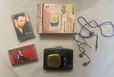- Komplekt: Qutu, kaset pleyer, naqilli stereo qulaqcıqlar, iki musiqi kaseti (şəkillərdə görünən)