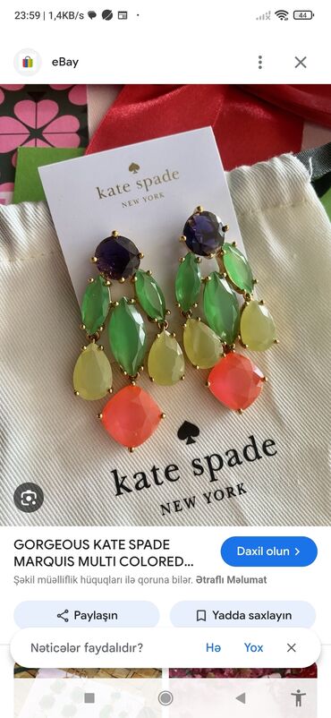 - Komplektləşmə: kate spade brend kartı və loqolu parça kisəsi şəkillərdə mövcuddur